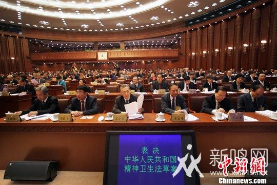 资料图:2012年10月26日,十一届全国人大常委会第二十九次会议在北京人民大会堂举行闭幕会,表决通过了《中华人民共和国精神卫生法(草案)》。中新社发任晨鸣摄