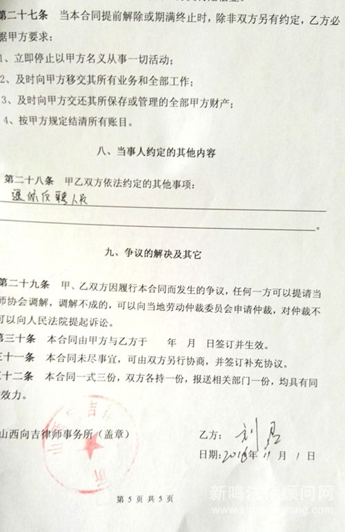 2016年11月1日,山西向吉律师事务所与原大同市中级人民法院退休法官刘君签订了正式聘用合同,特聘其为主任调研员。刘君法官的加盟将为山西向吉律师事务所的发展奠定坚实的基础。