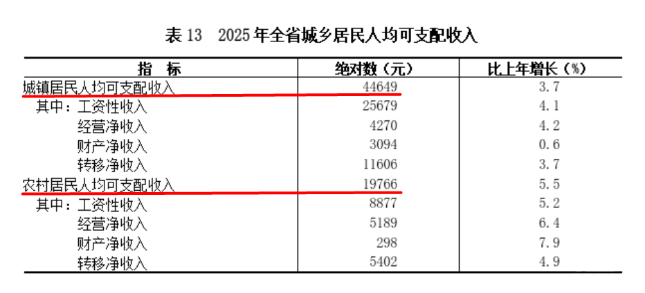一、2025年全省城镇居民人均年可支配收入44649元;